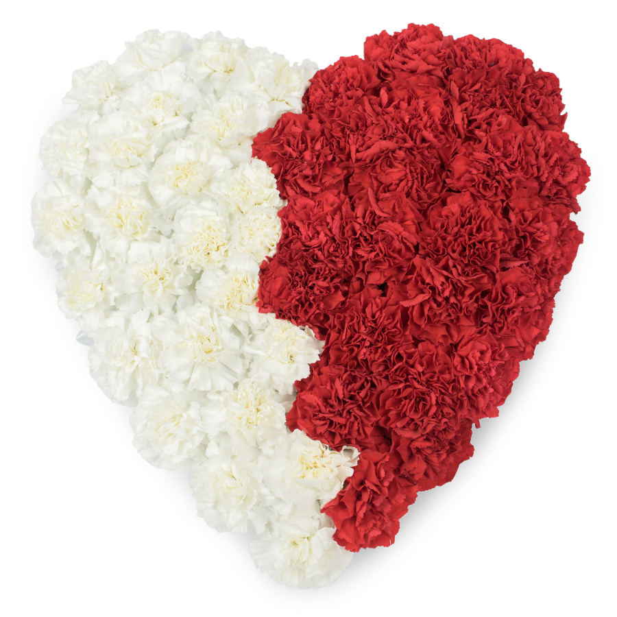 Indulge in the sophistication of our stately heart-shaped carnation bouquet, a masterpiece blending the elegance of white with the passion of red carnations. Each flower is hand-selected to ensure peak freshness and visual appeal, resulting in a bouquet that exudes charm and luxury.